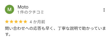 問い合わせへの応答も早く、丁寧な説明で助かっています。